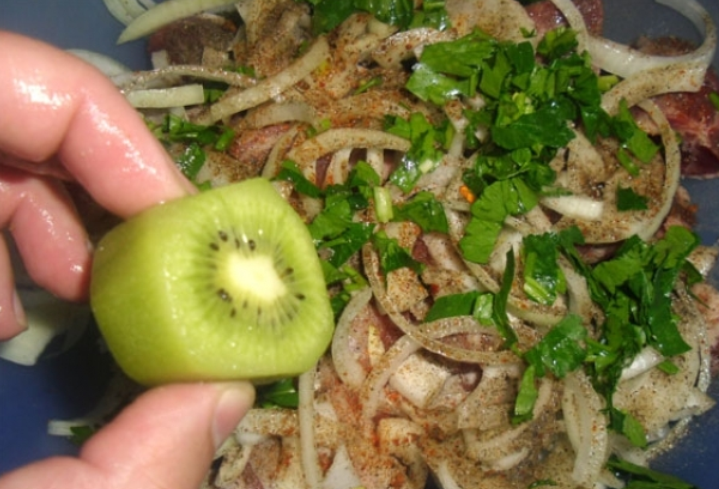 Этот рецепт подойдет для тех случаев, когда ваше время сильно ограничено. Кроме того, рецепт маринада с киви выручит вас, если вы промахнулись с выбором мяса (купили старое, жесткое). При взаимодействии с киви любое мясо становится нежным.