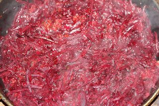 Добавляем к свекле и луку аджику и тушим до готовности свеклы.