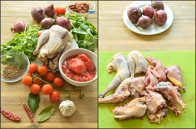 Помидоры в собственном соку, просто свежие помидоры, желательно конечно сладкие, такие как черри например. Лук обязательно в половину веса псисы. Кориандр, чеснок, кинза, базилик или райхон, Я добавляю еще немножко вяленых помидор в масле, они придают очень интересный полутон вкусу чахохбили. Сливочное масло, черный перец, соль, 100 грамм сухого белого вина.