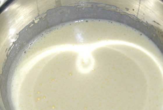 Дрожжи развести в 350 г теплого молока и смешать с 150 г муки.