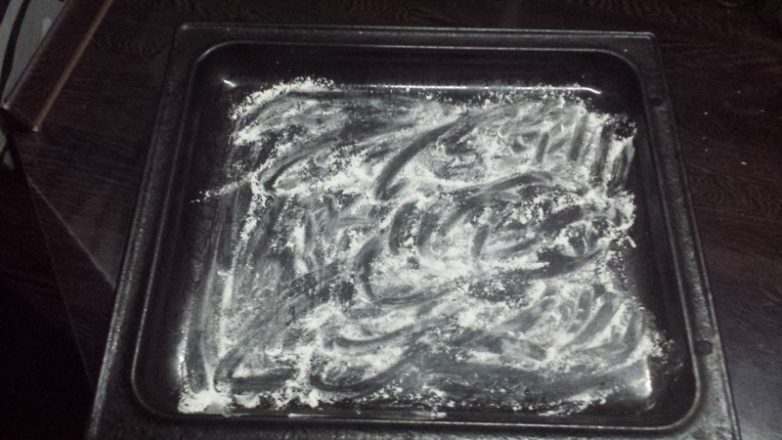 Противень слегка посыпаем мукой.