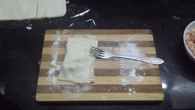 Так как мелкая моторика у нас весьма проигрывает женской, я так и не смог научиться запечатывать пирожки руками. Поэтому вилка мне в помощь.