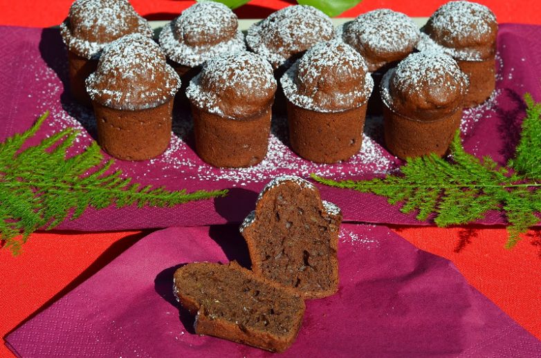 Всё! Шоколадно-банановые маффины готовы! Текстура достаточно влажная, но воздушная. Украшаем сахарной пудрой и подаём к чашке хорошего кофе или капучино.