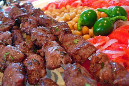Из мякоти говядины, которую нужно очистить от пленок и сухожилий, нарезают небольшие одинаковые кусочки, складывают в глиняную или эмалированную посуду. Затем мясо пересыпают смесью соли, черного молотого перца, мелко нарезанного лука, молодых семян кориандра, взятых по вкусу и разведенных в нескольких ложках фруктового или винного уксуса. Все хорошо перемешивается, посуда закрывается крышкой и ставится в прохладное место на 12 часов. Затем сок слегка отжимается, а мясо очищают от специй. Кусочки мяса нанизывают на шампур и смазывают растительным маслом. Обжаривают над углями до готовности.