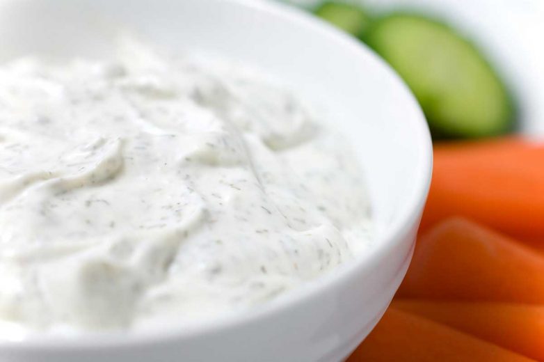 Мелко нарежьте небольшой пучок укропа без толстых стеблей и слегка примните лезвием ножа, чтобы выделился сок. Смешайте укроп с 250 г сметаны, туда же выдавите зубчик чеснока (два или три — в зависимости от силы вашей любви к чесноку), перемешайте, посолите и поперчите. Соус готов.