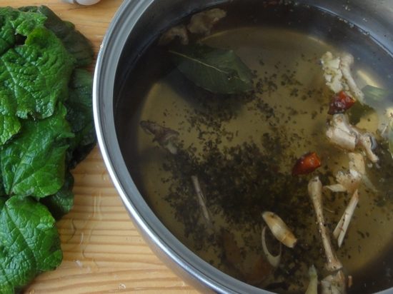 Приготовление маринада: в 250 мл воды растворить сахар, соль, добавить специи и кипятить 1 минуту. Затем добавить уксус, все перемешать.