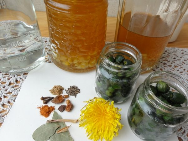 Для приготовления каперсов из одуванчиков собирают наименьшие плотные бутоны, самые нижние, которые находятся ближе к земле и еще не начали распускаться.