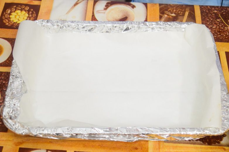 Заготавливаем противень с бумагой для выпекания