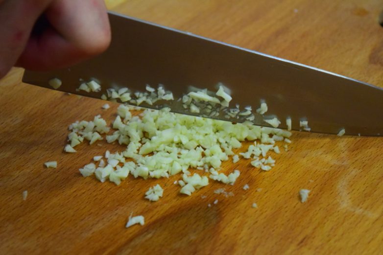 Мелко нарезаем чеснок
