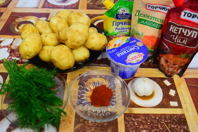 Молодой картофельКетчуп чили (или соус чили)