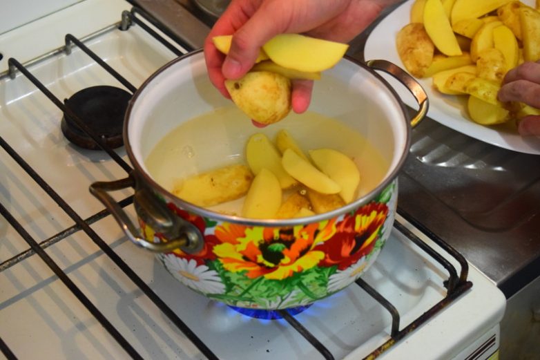 Картофель режем на 4 дольки