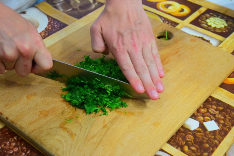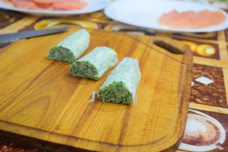 Зеленое масло нарезаем на то кол-во котлет которое будем готовить