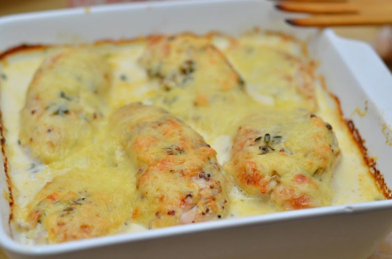 7. Сверху посыпаем сыром. И убираем в духовку на 20-25 минут. Тут главное не передержать филе, чтобы оно осталось сочным.