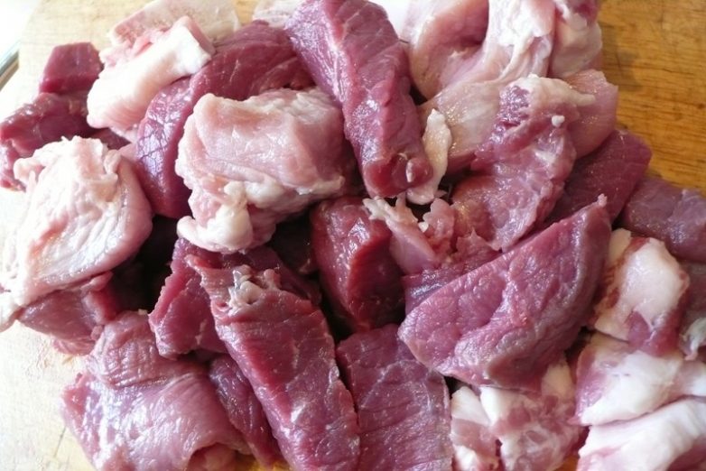 Готовим мясо, жилки кропотливо вырезаем, режем кусочками. Говядина имеет яркий вкус, в отличие от свинины. Поэтому, довольствуясь одной свининой, вы сильно снизите вкусовые качества вашего будущего блюда. Одна говядина без сала будет суховата и жестковата, и не даст прочувствовать всю прелесть лазаньи. Делаем правильный фарш, чутье не должно обмануть истинного кулинара и пропорции будут выбраны правильно, я верю в вас. У меня фарш состоялся из половина говядины, 1/6 сало (несоленое), остальное свинина.