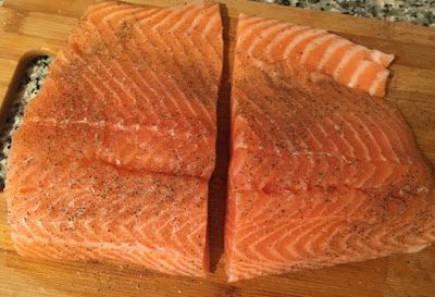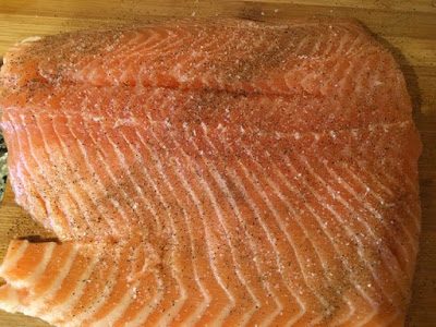Филе семги солим и перчим по вкусу.