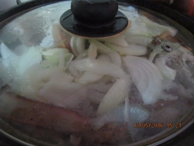 Накрыть все крышкой. Убавить температуру на минимум.