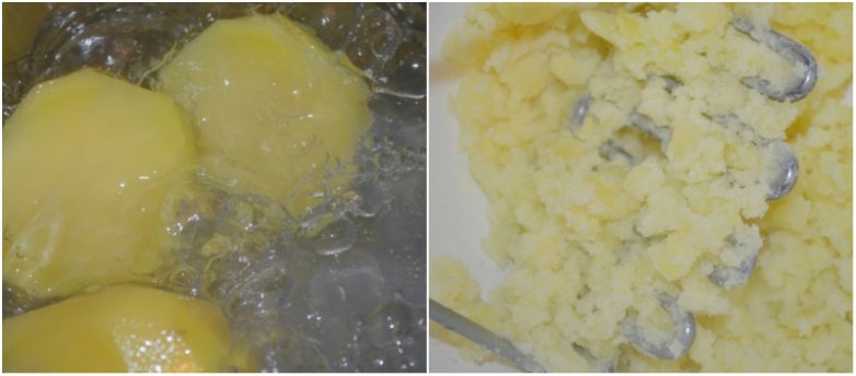 Картофель очистите и отварите в подсоленной воде. Воду слейте, картофель разомните
