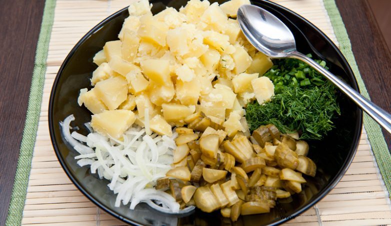 можно добавить вареные морковь и яйца — получится салат «Степной»