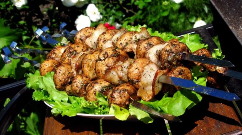 Попробуйте запечь маринованные шампиньоны на мангале. Готовятся такие грибочки буквально считанные минуты и получаются неизменно вкусными, сочными и ароматными. Главное – перед тем как готовить шампиньоны на мангале, это правильно замариновать грибы, чтобы они не успели потерять влагу в процессе запекания.