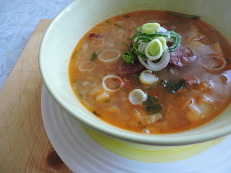 Супчик с квашеной капустой и колбасками