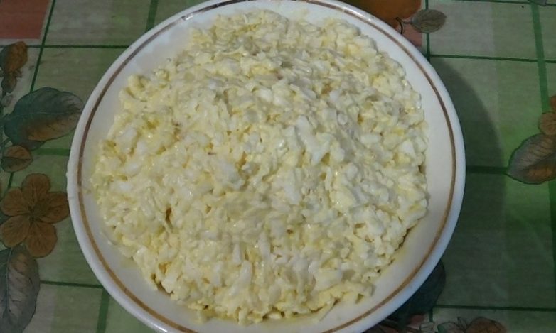 Любимый салат моего брата. Серьёзно, даже если альтернативы есть, он предпочтёт корпеть над «Мимозой». И да, этот советский салат претерпел серьёзные изменения, относительно оригинального рецепта. Изначально туда шла варёная рыба, а про картошку даже речь не шла. Но нажористость и объем надо было как-то повышать, так что хозяйки начали добавлять туда тёртую варёную картошку. Это сглаживало вкус, но повышало калорийность. А рыбу потом вообще консервами заменили. Готовится это блюдо так: