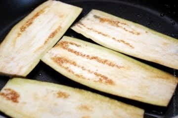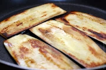 Баклажаны должны стать темно-золотистыми. Выложить поджаренные баклажаны на тарелку и дать им остыть.