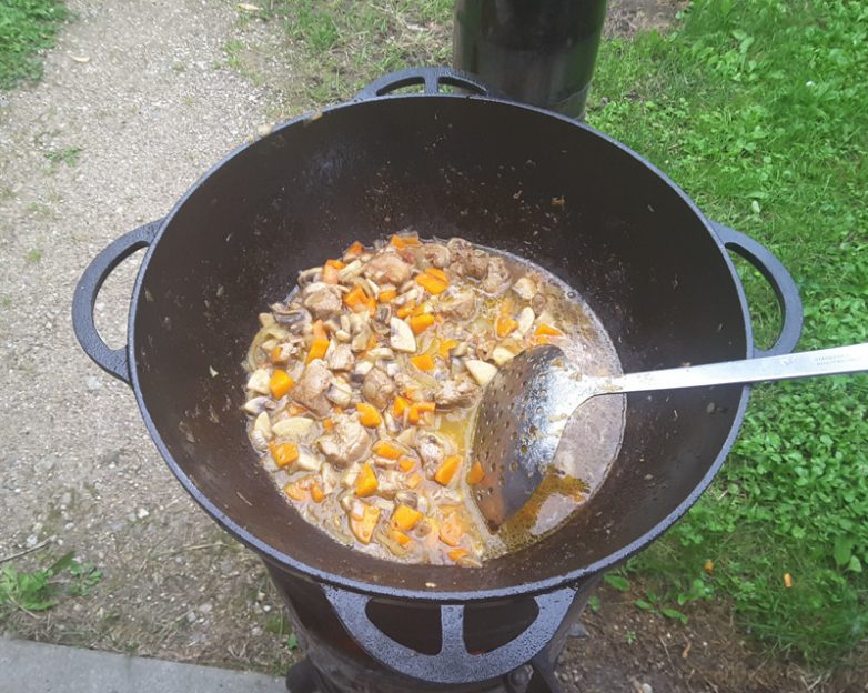 когда овощи и мясо стали мякими… засыпем гречку и залём воды примерно на 2 см над гречкой