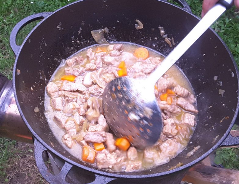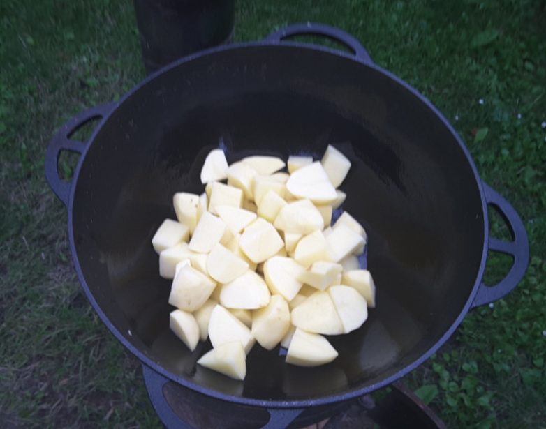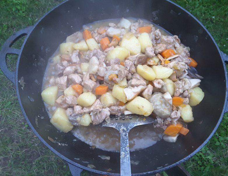 Картошка с грибами и мясом в казане