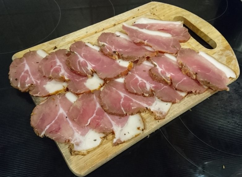 От автора: «Заехал я уже как три недели назад, в „фермерский“ магазинчик по пути на дачу. Набрал кил 10 мяса свинки. Разделал. Пару кусков сразу в обработку. Остальное в морозилку до лучших времён.»
