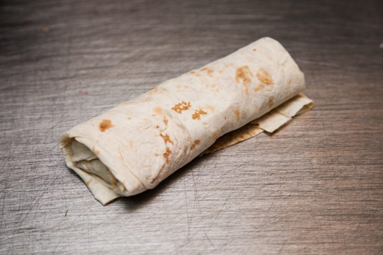 Обжарить рулет из лаваша на гриле.