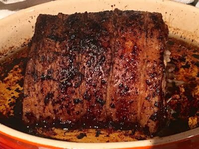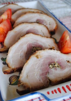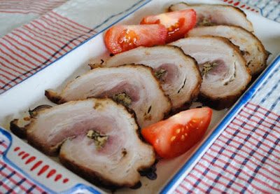 Сверху натираем рулет оставшимися солью и перцем, накрываем и оставляем в холодильнике на 4-24 часа. За 2 часа до начала приготовления вынимаем рулет из холодильника. Кладем его швом вниз в слегка смазанную маленькую форму для запекания. Ставим форму в разогретую до 230 C (450 F) духовку на 15 минут. Уменьшаем температуру духовки до 160 С (320 F) и готовим еще 1 ч. 45 мин.
