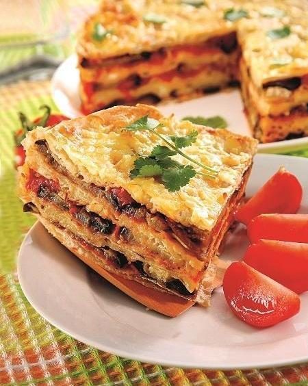 Закусочный пирог из лаваша с баклажанами и брынзой