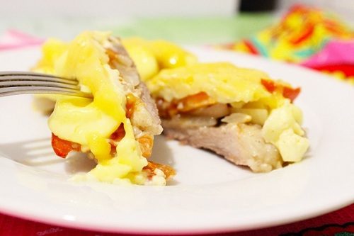 Мясо по-французски — необычайно вкусное блюдо, которое ассоциируется у нас с праздником, поскольку чаще всего подается именно в качестве угощения для гостей. Готовить такое мясо очень удобно – необходимо всего лишь выложить все ингредиенты на мясную отбивную и запечь блюдо в духовке.