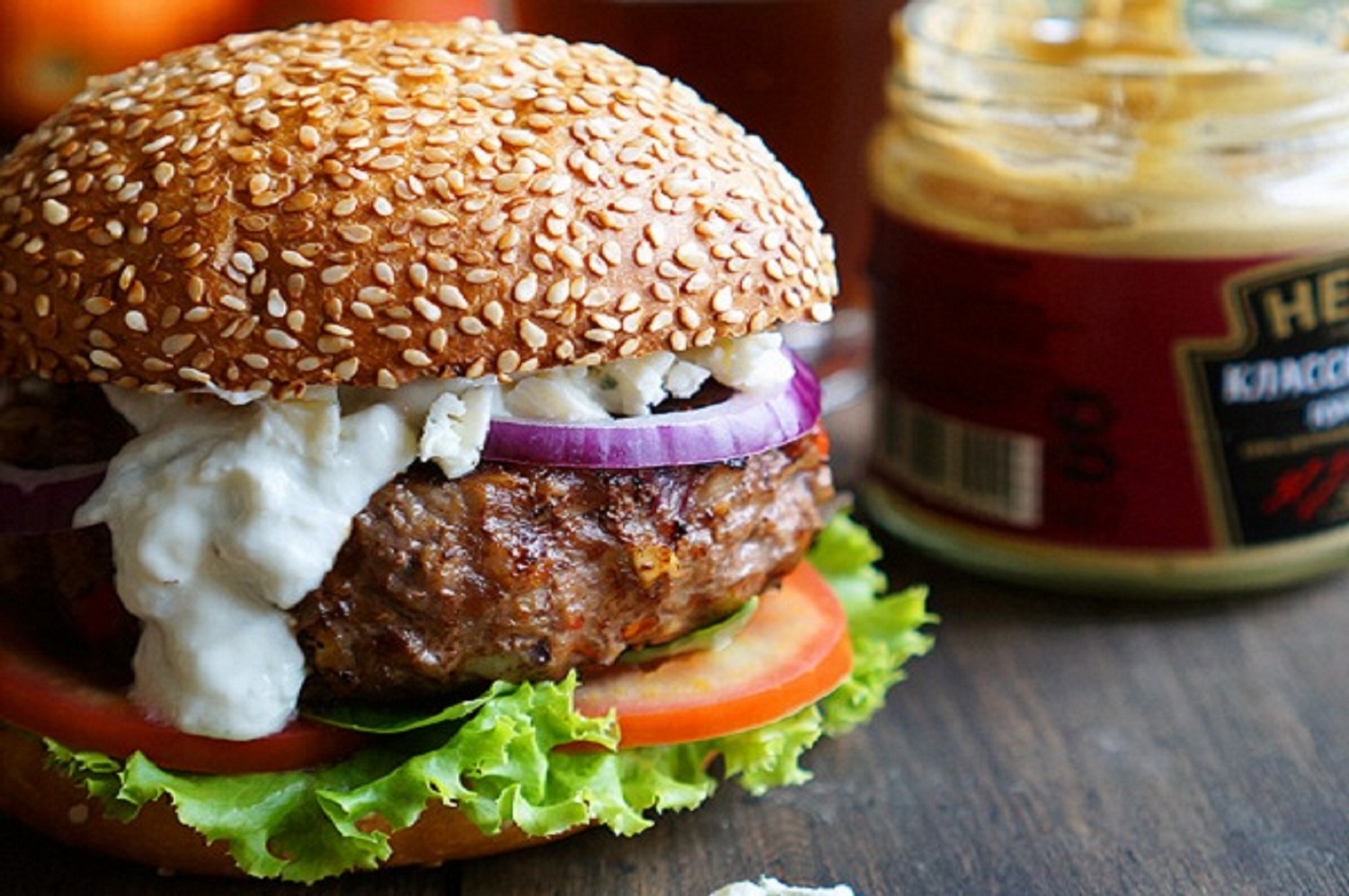 Гамбургер с соусом из голубого сыра