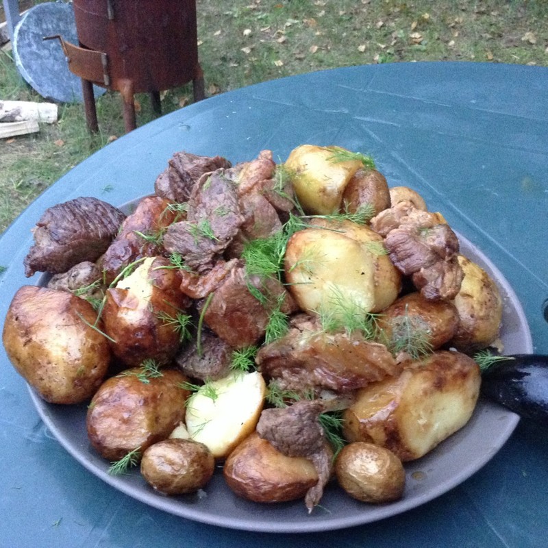 Готовим картошкус мясом в казане на учаге