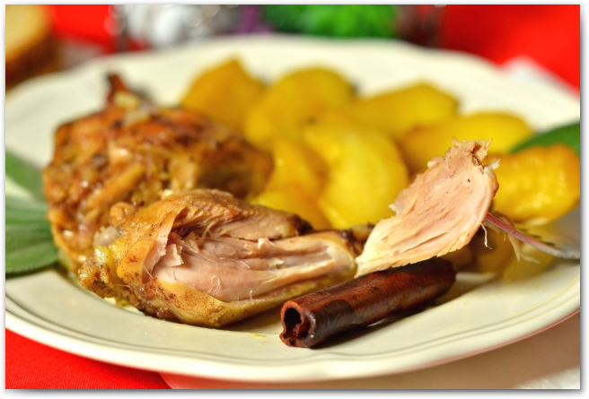 Всё! Роскошная курица с яблоками готова. Как только вы поднимите крышку, ваша квартира моментально наполнится изумительным сладким медовым ароматом, переплетающимся с пряным запахом корицы и шалфея.