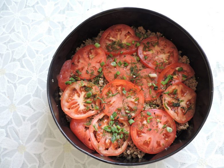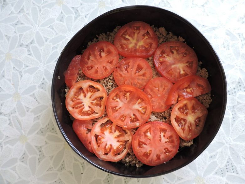 А нельзя просто сделать из обжаренного фарша и лапши «лапшу по флотски» просто перемешав их? Не надо тратить лишние 50 минут в духовке. А из луки и помидор сделать салат -все витамины будут целы.