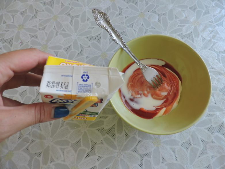 Готовим соус. Смешать майонез и томатную пасту с молоком и перемешать