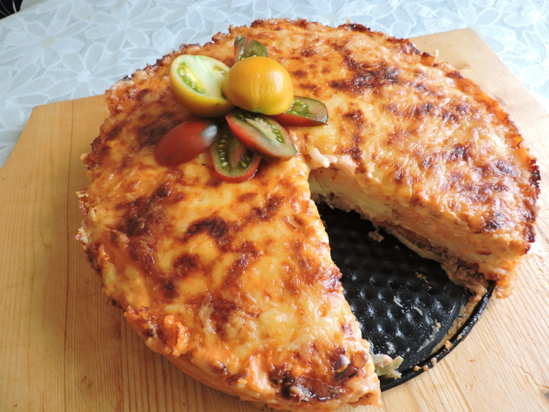 Вот так вот простые макаронные изделия с фаршем превратились в такой красивый пирог