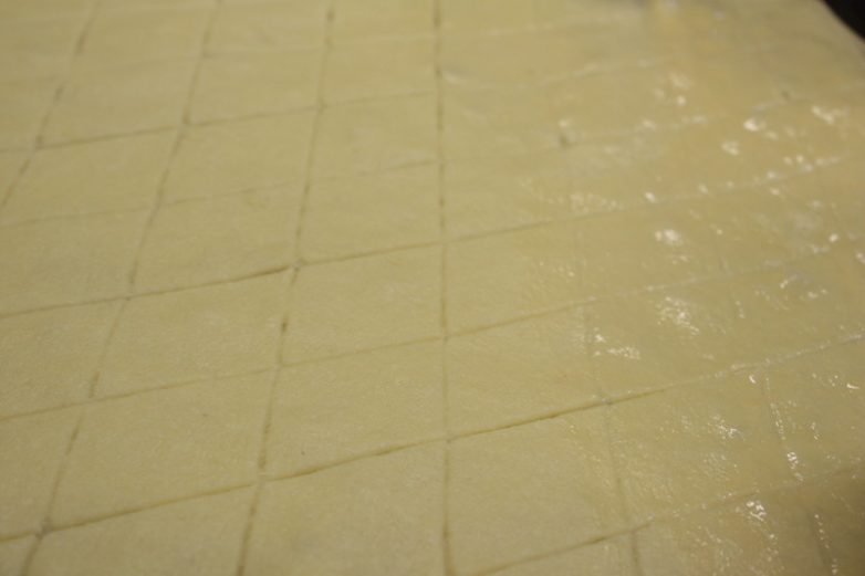 Я обратил внимание, что лишнее тесто у пахлавы отрезают, формируя правильный квадрат.