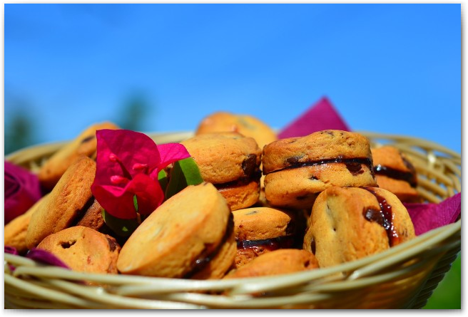 Душистое, благодаря корице, хрустящее печенье с шоколадными капельками действительно очень вкусно само по себе, но малиновый джем дополняет вкус, делая это печенье лакомым и соблазнительным.