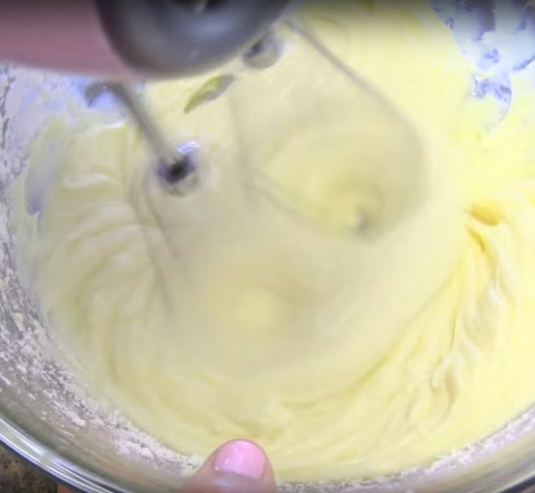 Пока рулетики выпекаются, приготовьте крем. Сахар можно добавить лишь при использовании сливочного сыра. Если вы предпочитаете крем со сгущенкой, добавлять сахар, скорее всего, не будет необходимости.