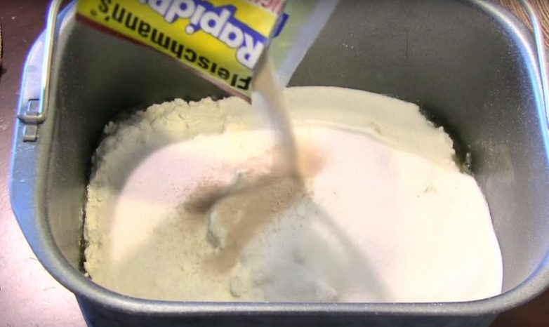 Конечно, можно по старинке смешать все в большой тарелке. Теперь добавьте муку, дрожжи и хорошенько все перемешайте.