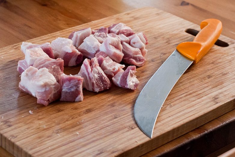 И дальше я тоже процесс немного усложнил. Мясо я все порезал кубиками сантиметра по 4.