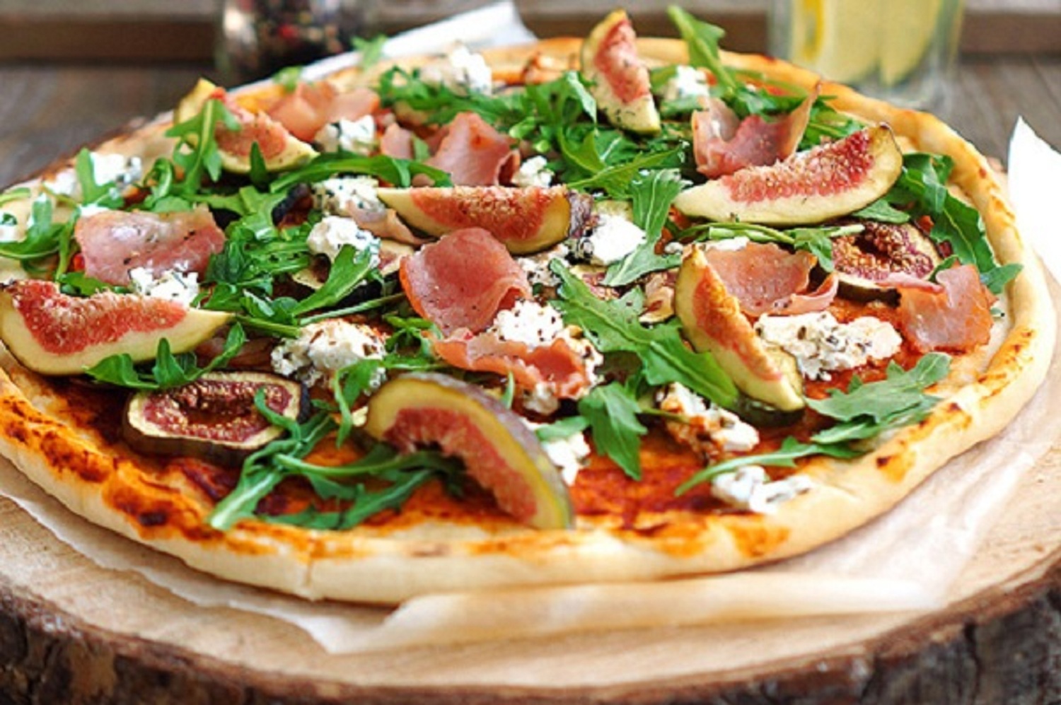 После того, как мы научились делать тесто для пиццы и базовую Маргариту, пора переходить к более сложным и интересным сочетаниям. И вот вам пицца с инжиром, прошутто и козьим сыром (плюс немного зелени).