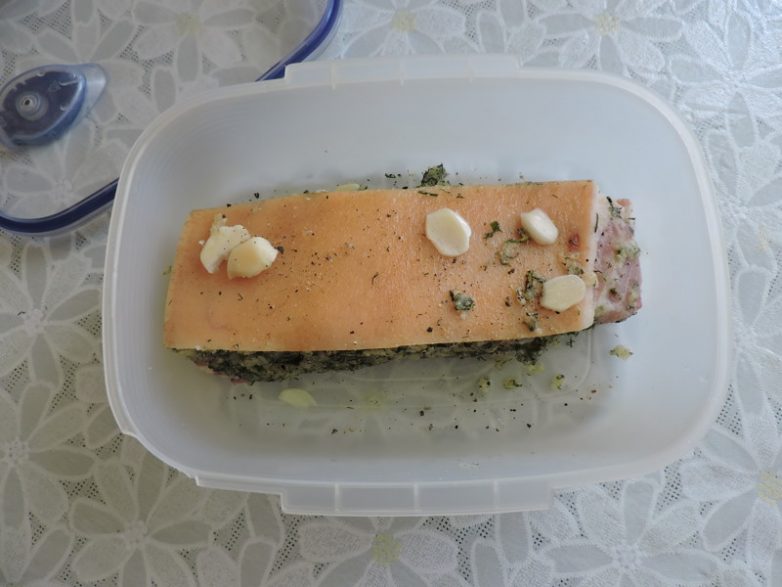 Обильно смазала кусок грудинки