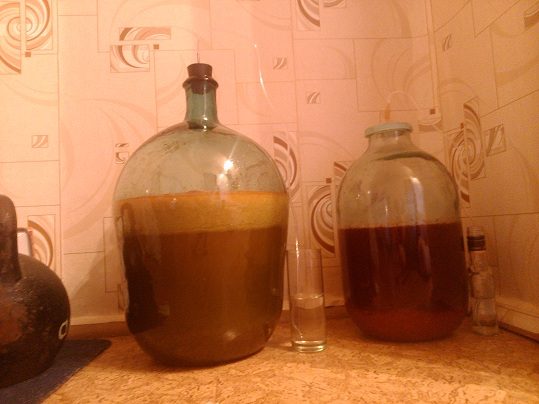 12. При появлении осадка слоем 4-5 см (сначала раз в 10-15 дней, потом реже) фильтровать вино путем переливания в другую емкость. Когда осадок больше не появляется, вино из тыквы готово. Можно наполнить бутылки напитком и герметично закрыть.