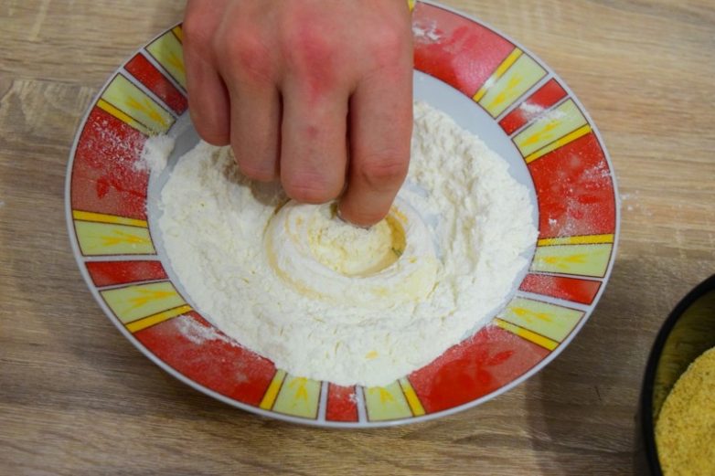 Затем в панировочные сухарис яйцом и сухарями можно повторить