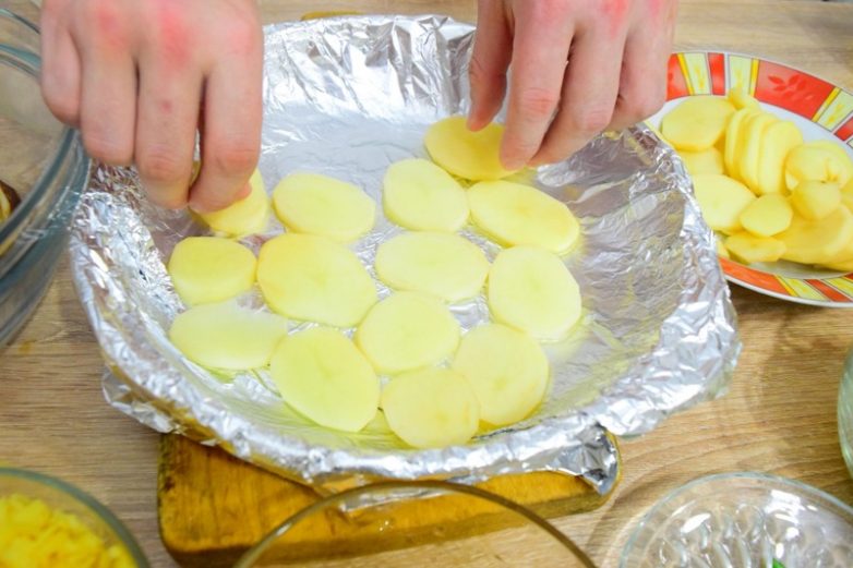 Выкладываем весь картофель на дно противня