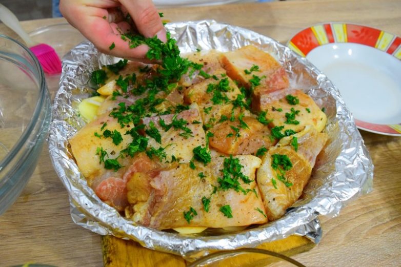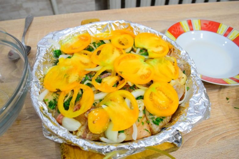 закрываем фольгой и отправляем в духовку на 30 минут при температуре 180-200 градусов